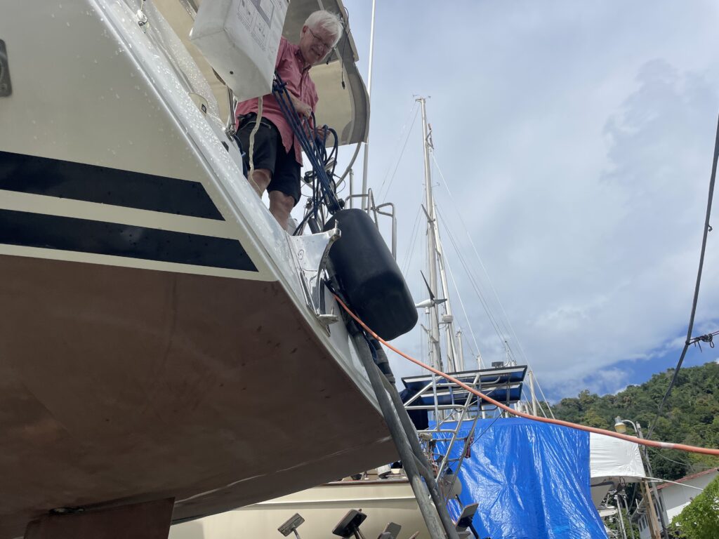 Angekommen in Trinidad hieß es Nova auf die Sommersaison vorzubereiten, das heißt Segel runter, Bimini und Sprayhood abbauen, Verklicker vom Mast abbauen, Wassermacher Pickeln ( Schläuche mit einer speziellen Flüssigkeit befüllen ), Lebensmittelvorräte inspizieren und verderbliche Lebensmittel entfernen , Nova an Land stellen und gegen Regen mit Folie abdecken, usw., usw.